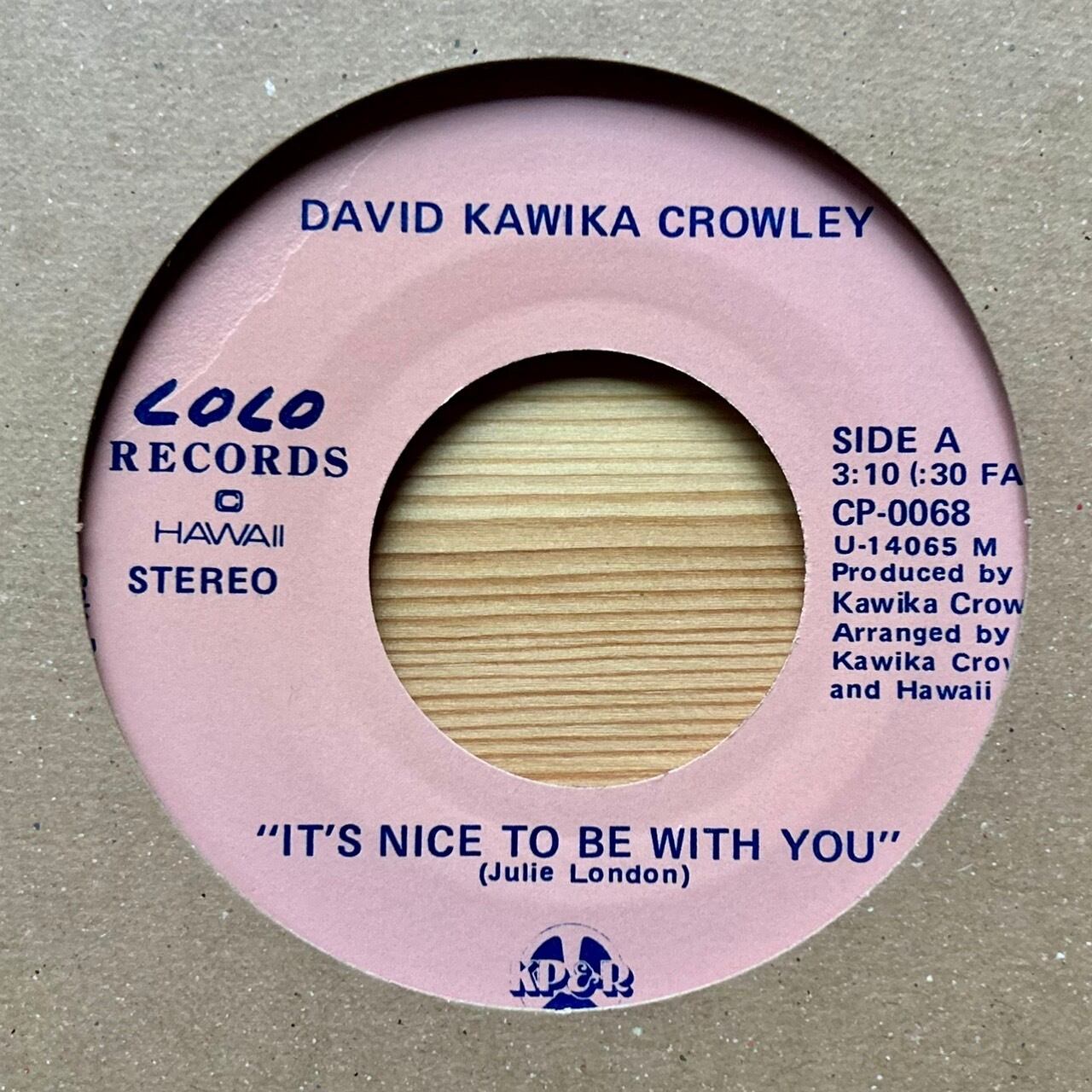 ハワイのレア盤アーティスト"Ray Peralta""Rick Bereman"のアルバムにも参加していたシンガー・ソングライター"David Kawika Crowley"による80年リリースの7inch only!!