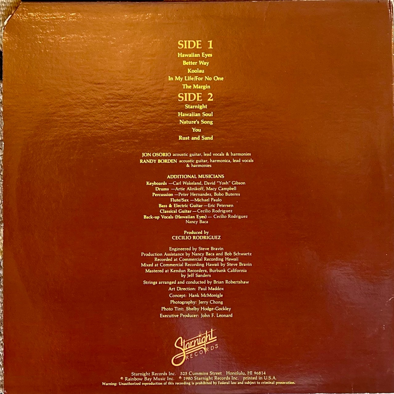 ハワイ出身の男性デュオによる80年デビューアルバムにして唯一のアルバムタイトル。